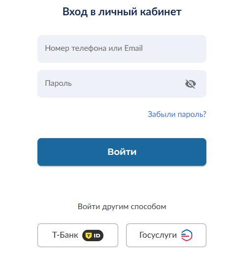 Также доступен вход через Госуслуги или Т-Банк ID.