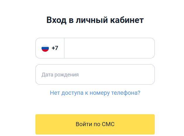 Для авторизации нужно ввести номер телефона и дату рождения.